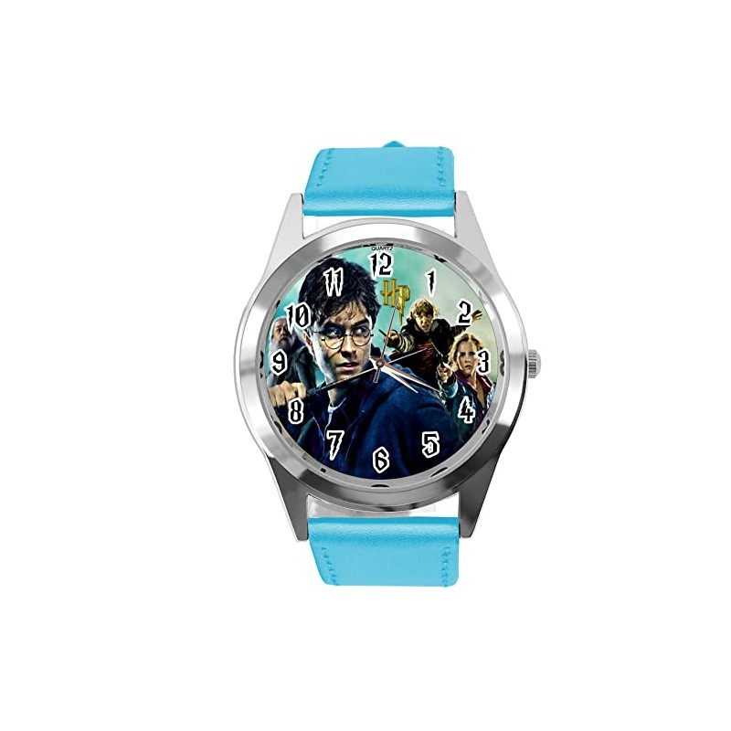 Round Quartz Watch in Blue Leather for Wizard Fans E3
