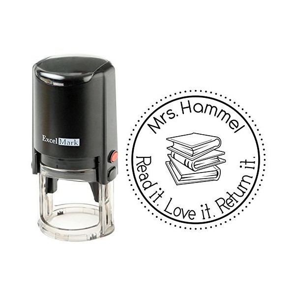 - Design features: book stack graphic, "Read it. Love it. Return it.," and your name