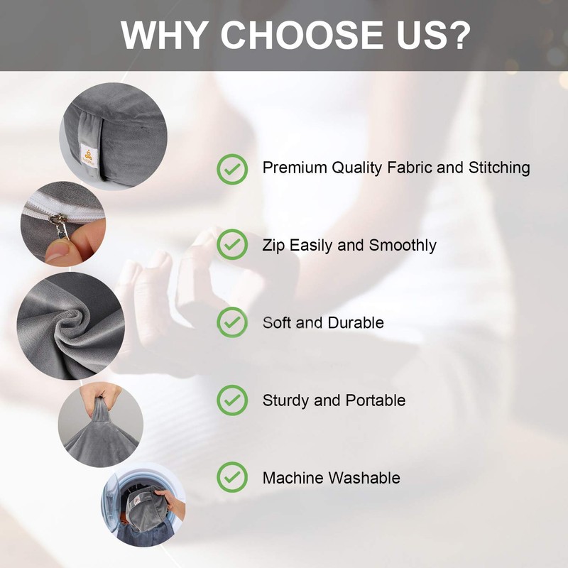 HIGH QUALITY : The treatment of dehydration, high temperature washing and ultraviolet fumigation ensures natural buckwheat hulls are low water content, clean and flour free. 10oz encrypted canvas cover is soft and durable, which is also shrink free and fade resistance. Inner case cover of grey fabric is sturdy.