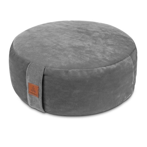 Round Velvet Meditation Pillow D=13"/16" H=5.5" Yoga Bolster Floor Pouf Zafu Buckwheat Meditation Cushion for Sitting on Floor,Removable Organic Cotton Cover Kneeling Pillow (Light Grey, 13"×13")