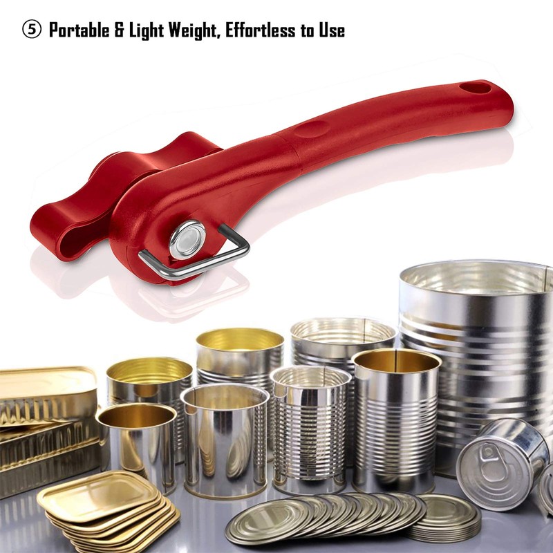 - PORTABLE AND LIGHTWEIGHT:Suitable size makes this opener easy to carry when traveling or camping. It can open all kinds of round and oval cans. It is also convenient for you to hang or store it with the hole on the handle.