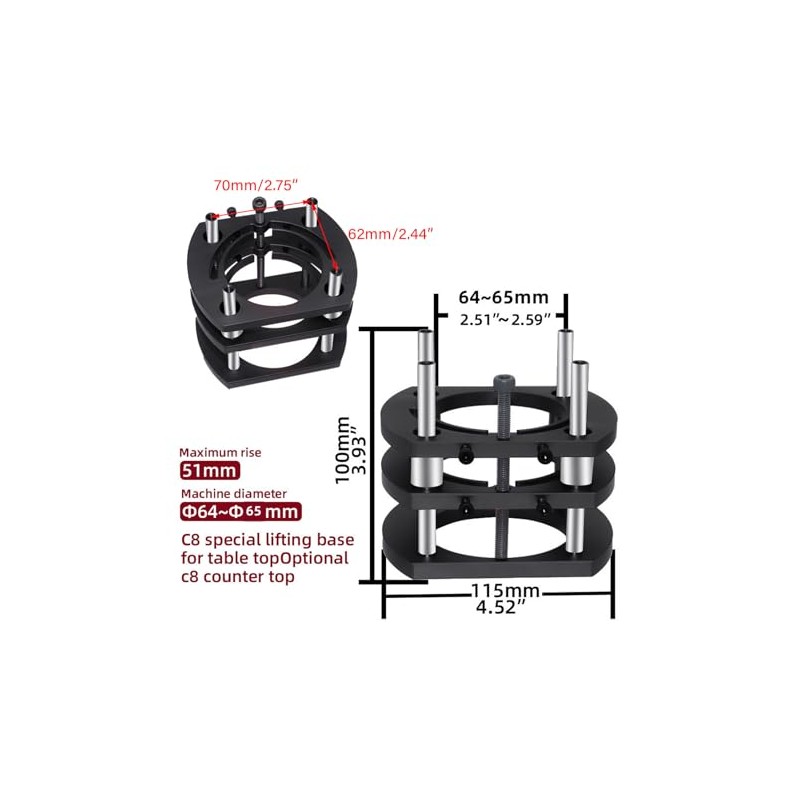 - Versatile Compatibility: The Router Lifting Platform is designed to accommodate small trimming machines with a clamping machine diameter ranging from 64 to 66mm. It provides a secure and stable grip with its 4 claw grip design, ensuring compatibility with a wide range of machines. Enjoy the flexibility of a lifting platform that can be used with various machines, expanding the possibilities of your woodworking projects.