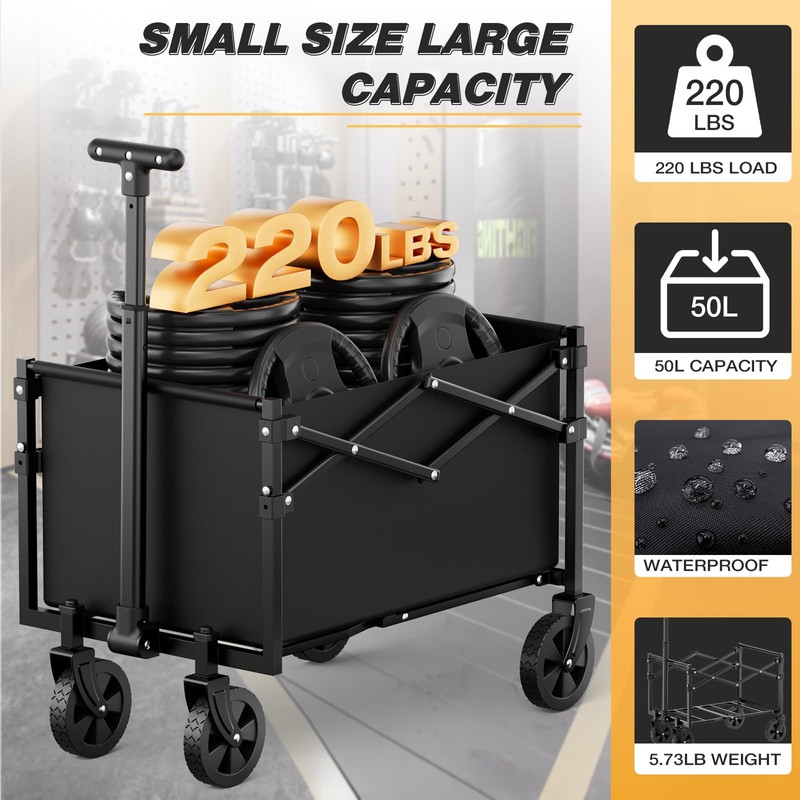 - Convenient for Small Loads: 50L capacity supports up to 220 lbs, perfect for small loads such as light shopping, beach trips, or gardening tasks