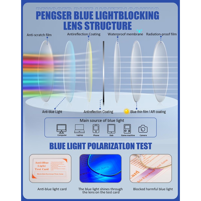 - Personalize Your Eye Protection: Anti-Blue light lenses customize your eye protection with ROWCHIC's anti-blue light lenses. Featuring clear UV400 coating, these lenses effectively block up to 99% of harmful blue light.