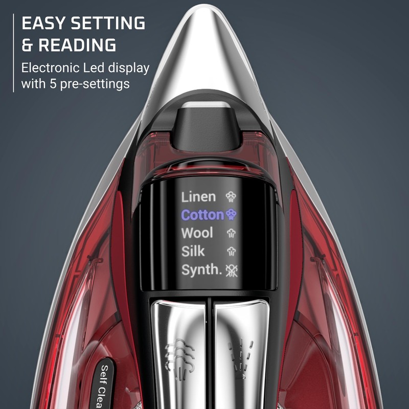 Special Feature:Continuous Steam Technology, Auto Shutoff, Precision Tip, Steam Boost Function, Anti-Calc Function, Cordreel, Retractable Cord, Anti-Drip, Even Heat Distribution, LED Display, Scratch Resistant, Non-Stick Soleplate