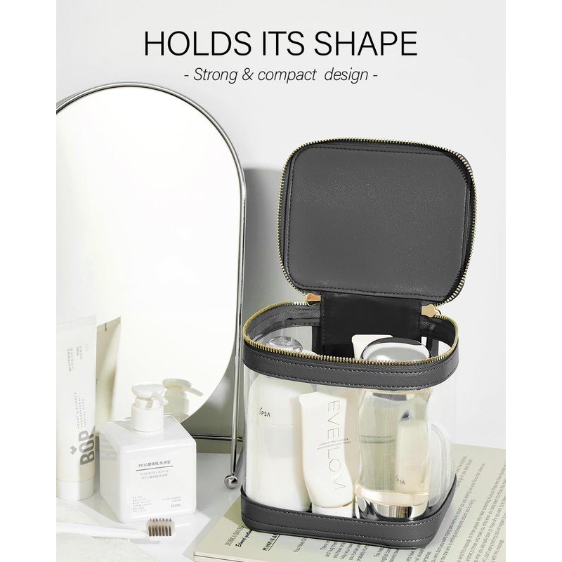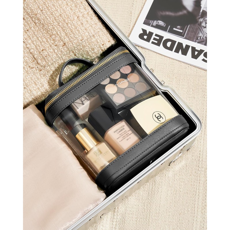 ROWNYEON - Bolsa de maquillaje transparente para artículos de aseo de viaje, estuche transparente con cierre, organizador de maquillaje portátil, bolsa transparente para artículos esenciales con asa,