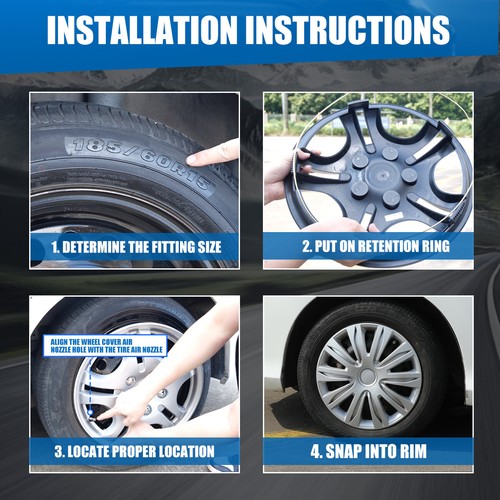 ROXX 13" Set Of 4 Wheel Covers Snap On Hubcaps Full Hub Caps fit R13 Tire & Steel Rim