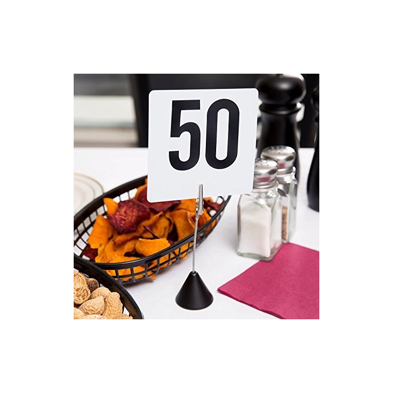 • Incluye: tarjetas numeradas del 1 al 50: estas son tarjetas de plástico para mesas numeradas del 1 al 50