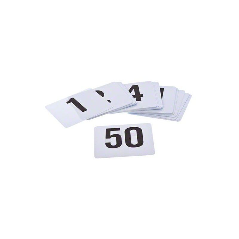 ROY TN 1 50 -Royal Industries - Juego de tarjetas de número 1-50 de plástico, 10,06 x 10,16 cm, base blanca con números negros