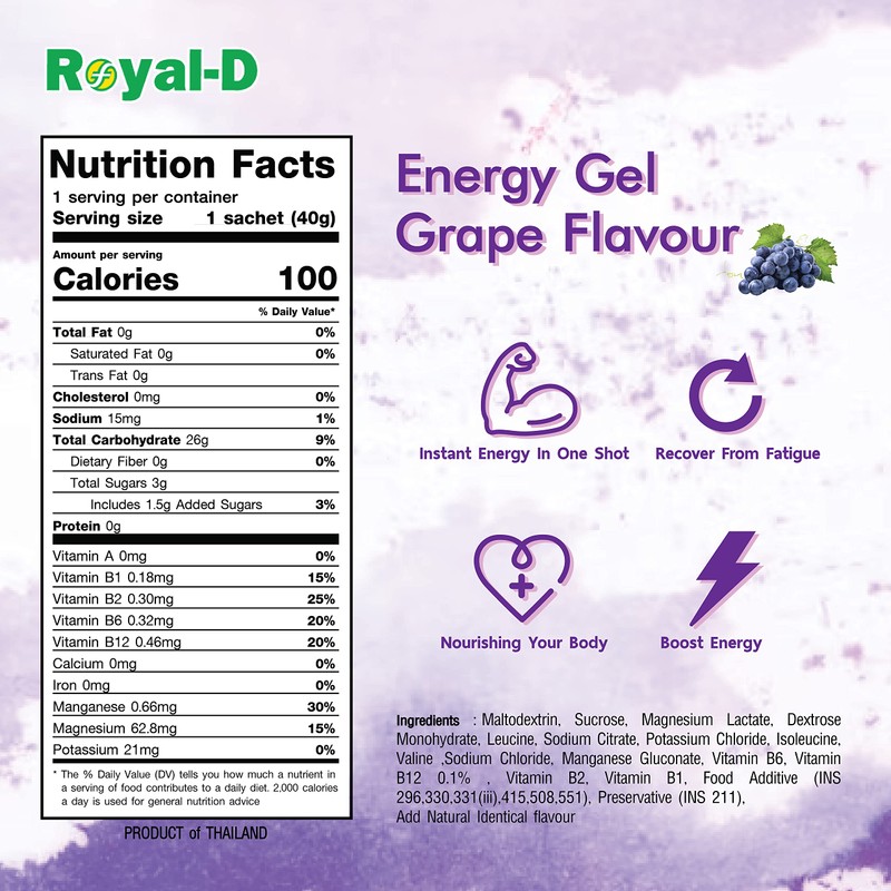 Royal-D Energy Gels for Running - Energy Gel, Running Gels, Sports Gels for Runners, Energy Gel for Cycling, Energy Gel for Running - Grape Flavor (1.4 Oz Packet, 20 Count)