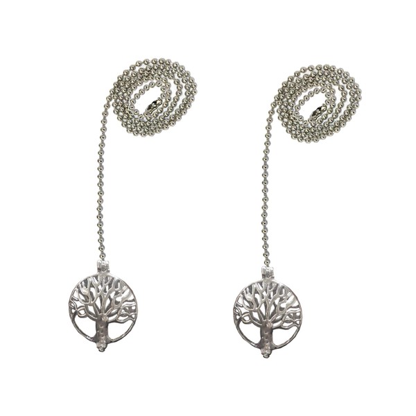 Royal Designs, Inc. Adjustable Ceiling Fan Pull Chain Extension with Jubilant Oak Ornament, 24 Inch, Chrome, Set of 2