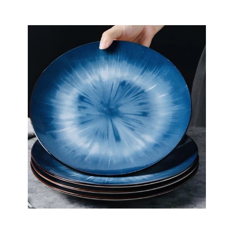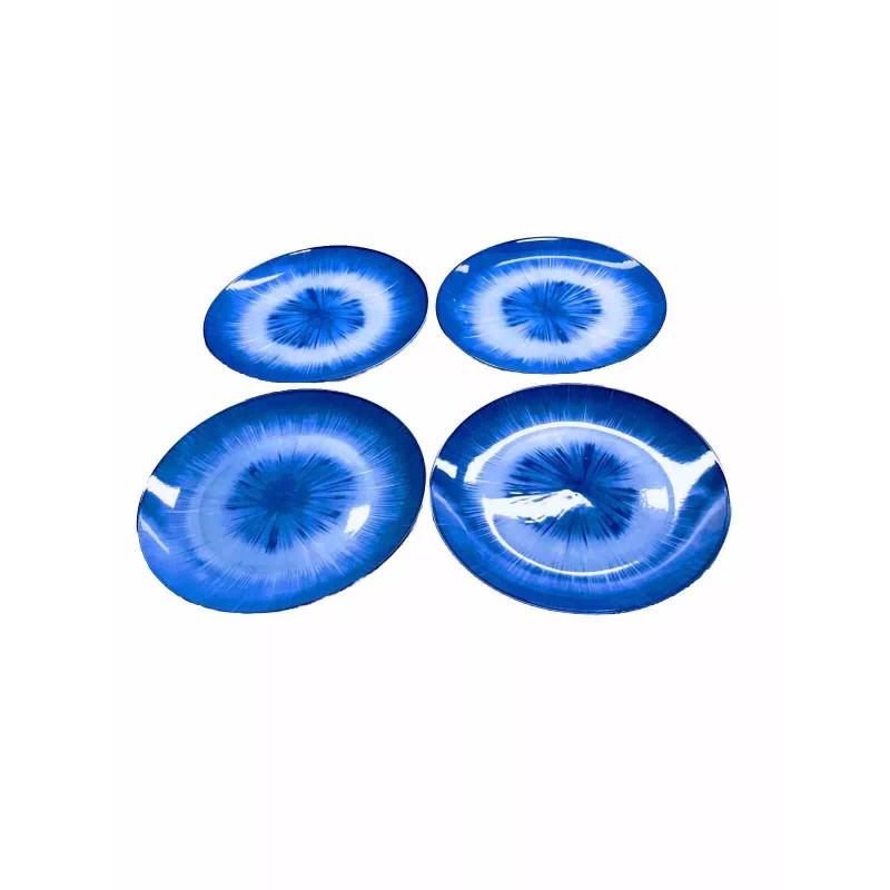 This set of four dinner plates from Royal Norfolk features a stunning blue burst pattern with a contemporary style. The round plates measure 7 inches in diameter and are perfect for all occasions. The plates are part of the Blue Lily product line and were manufactured in 2020 using fused glass production technique in China. The glossy finish and printed backstamp complete the look of these original art pottery plates. They are not handmade and are not antique or vintage. The set includes plates and is perfect for anyone who loves flowers and contemporary style. ShipN24H inventory Location Lower Level