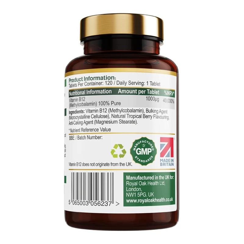 - ESSENTIAL VITAMIN B12 - B12 is key for supporting a healthy central nervous system and helps maintain healthy nerve cells and red blood cells. Royal Oak Health Methylcobalamin B12 (Vitamin B12) 1000 mcg sublingual tablets support general wellbeing.