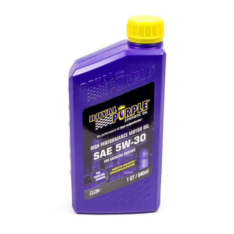 Royal Purple API-Licensed Heavy Duty SAE 5W-30 High Performance SN Synthetic Motor Oil is fully synthetic - not made from crude oil like traditional motor oils. It's used to lubricate, clean, and cool engines with the utmost efficiency. Motor oil varies in weight and viscosity, as well as additives that some manufacturers add to the oil during the refining process. A numerical code system created by the Society of Automotive Engineers (SAE) grades motor oils according to viscosity--the higher the number between 0 and 60, the more viscous (thicker) the oil is. This oil has a weight of SAE 5W-30, meaning it has an SAE viscosity rating of 5 in cold temperatures and a rating of 30 at normal operating temperature. Always check your vehicle's owner's manual to verify that this is the correct weight of motor oil for your vehicle. Synthetic oil can be used in vehicle engines instead of motor oils refined from crude oil, and often provides superior mechanical performance over traditional motor oil, including increased gas mileage and reduced engine wear at extreme temperatures. Its complex method of production means it can often cost more than conventional motor oil. Royal Purple Motor Oil Combines premium base oils with proprietary additive technologies to create high performance motor oils that optimize engine performance and provide superior protection. No special procedures are necessary when upgrading to Royal Purple. Royal Purple motor oil is fully compatible with mineral or other synthetic oils. Royal Purple recommends waiting until the manufacturer's first scheduled oil change in new gasoline engines before upgrading to Royal Purple. Royal Purple's API licensed motor oil delivers superior protection and improves performance in gasoline and diesel engines. Royal Purple's API SN licensed motor oil meets ILSAC GF-5 and Dexos1 1 performance requirements.