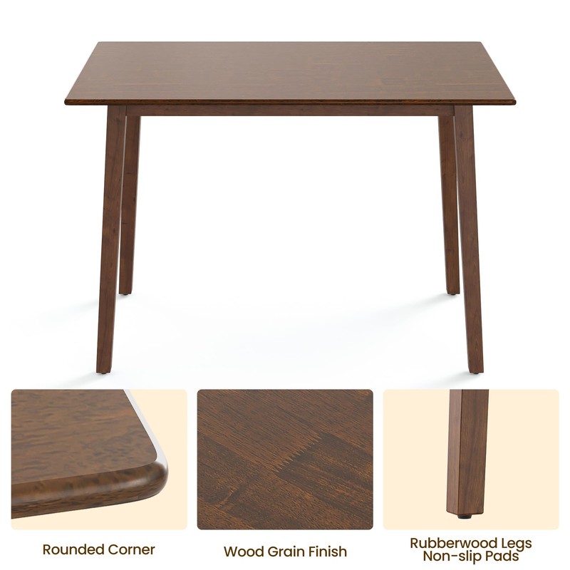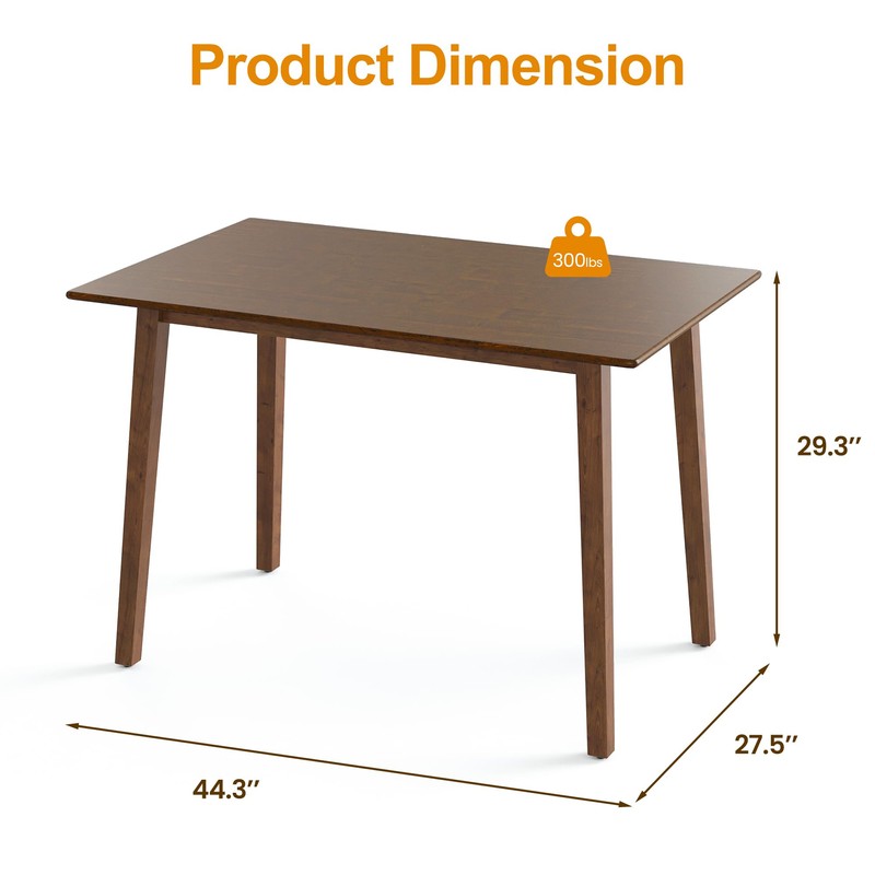 This 44-inch solid wood dining table comfortably seats 4-6 people, offering a cozy and functional addition to your home. Made from enduring rubberwood, it supports up to 300 lbs, ensuring excellent stability. The simple farmhouse design, paired with a warm, distressed brown finish, creates a welcoming and elegant atmosphere. Whether for dining or working, it provides a comfortable space for family gatherings and special moments.