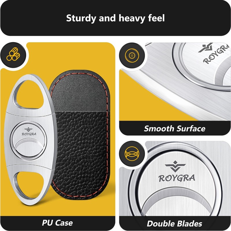 roygra Cigar Cutter with Leather Protector, Stainless Steel Double Blade Guillotine (Black)