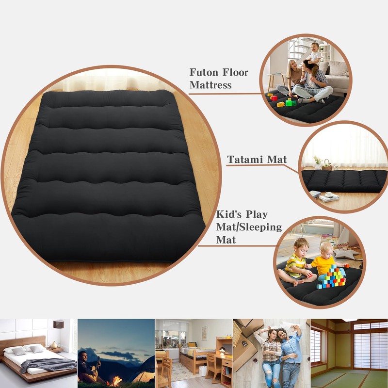 - 【MULTIFUNCTIONAL FUTON FLOOR MATTRESS】: ROYGROW Japanese style floor mattress is an ideal floor bed choice for a guest room, dormitories and travel. It can be a tatami mat, camping mattress pad, sleeping mattress for floor, living room futon, floor lounger, guest bed, and also can be a kids play mat.