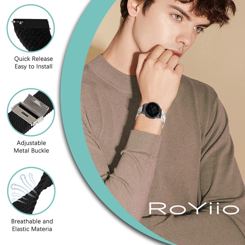 RoYiio Woven nylon bracelet for lug width 20 mm, 22 mm, comfortable and breathable, with quick release, nylon strap for men and women