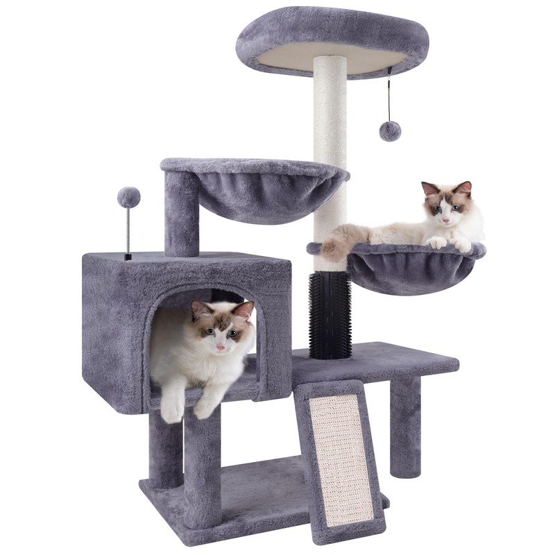 ROYPET Cat Tree with Cat Condo and Two Hammocks, Cat Tower with Scratching Posts and Scratching Pads, Grey