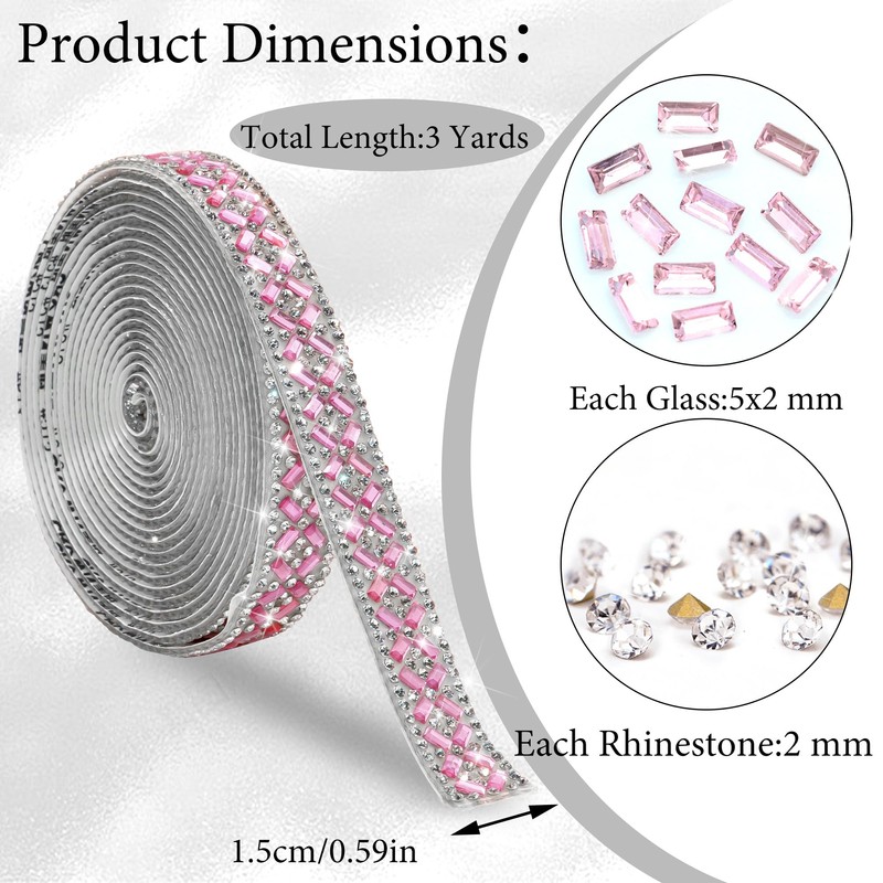 - Package And Dimension:You Will Receive 1 Roll Glitter Light Pink Glass Rhinestone Ribbon Roll Sticker.The Width Is 1.5 CM And The Length Is 3 Yards Totally,Which Can Meet Your DIY Design Need.You Can Use Rhinestone Trim to Make Your Items More Shiny And Eye Catching