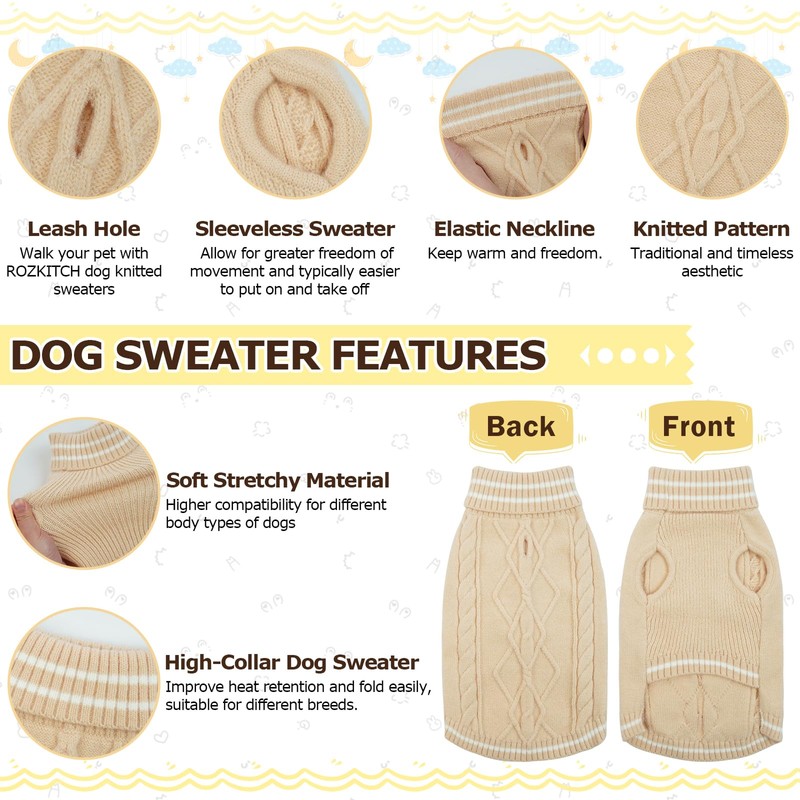 - SOFT WARM KNIT SWEATER: The ROZKITCH dog turtleneck pullover sweater is made of high density acrylic yarn that is comfortable, soft, warm and easy to care. The dog cable knit sweater is the cute winter clothes for your pet.