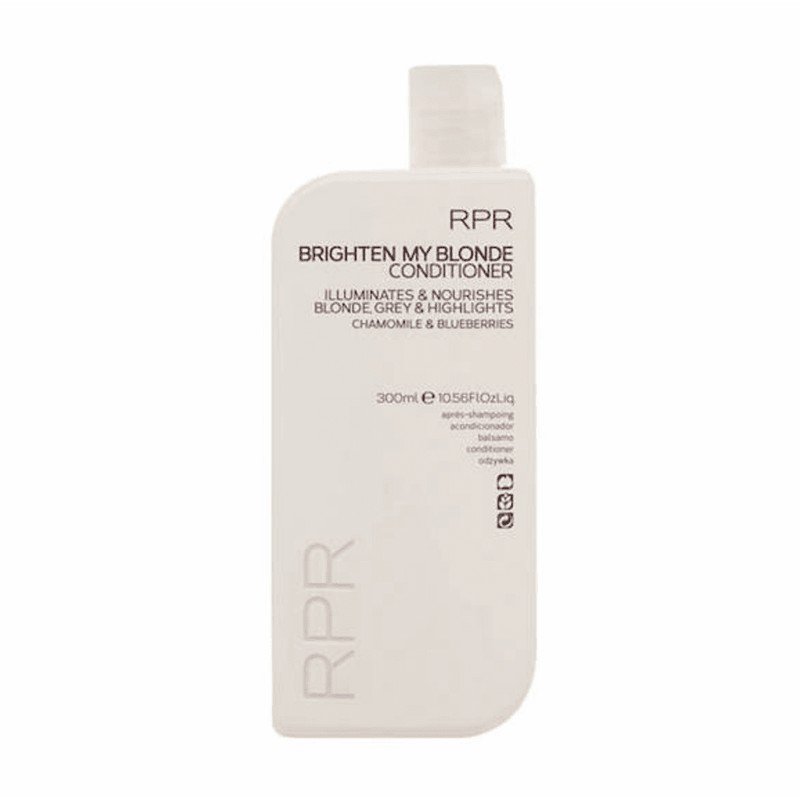 What are the benefits and features of RPR Brighten My Blonde Conditioner 300ml?- Reduces brassiness and brightens fair shades.