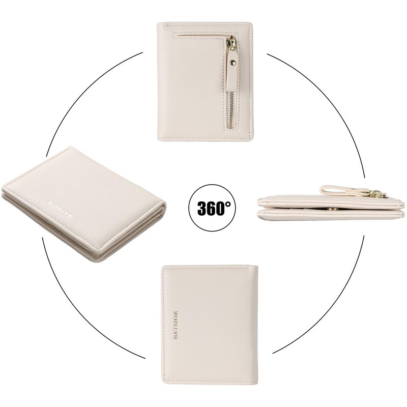 • Women's wallet with large capacity: the credit card holder has 6 card slots, 1 transparent photo window, 2 note compartments, 1 zip pocket. Type of closure: Button and zip. This small wallet is spacious enough to hold credit cards, ID cards, banknotes, coins, etc.