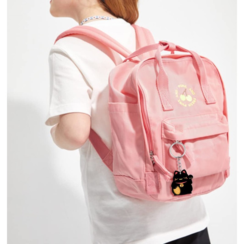 RRJQW Black Cat Keychain for Girls Cute Cat Keyring for Handbags backpacks Cute Cartoon Design Keyholder with Key Ring (Kitty Keychains)