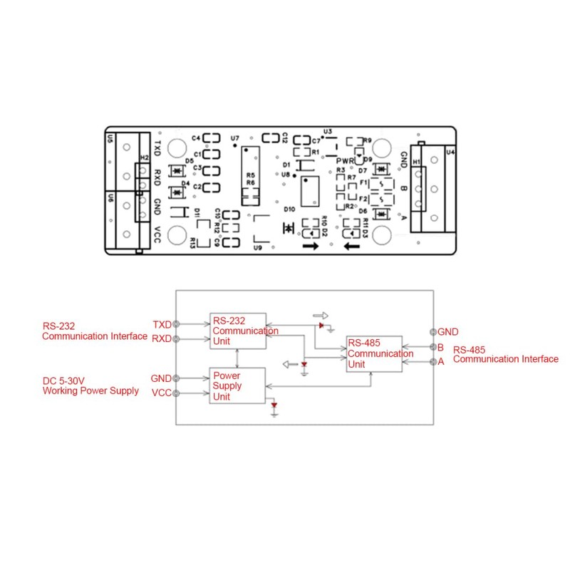 • The RS232 to RS485 module is an electronic module for realizing media conversion between RS232 and RS485 protocols.