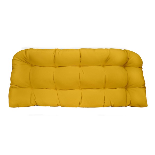 RSH DECOR: Tufted Wicker Loveseat Cushion | 41” x 19" | All-Weather Spun Fabric | Water and Fade-Resistant | Outdoor Settee Cushion for Patio Furniture | Yellow