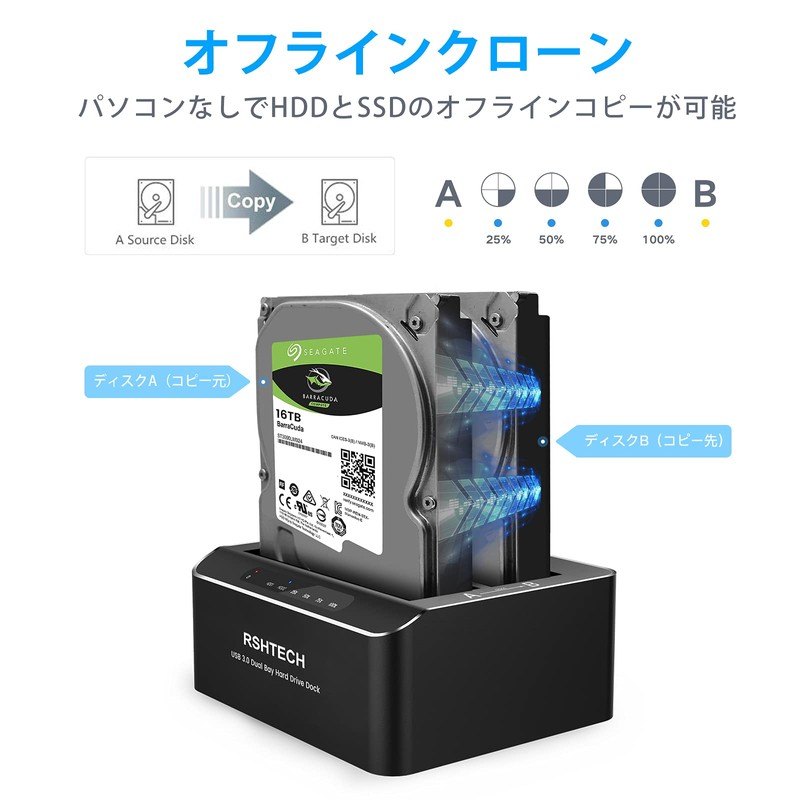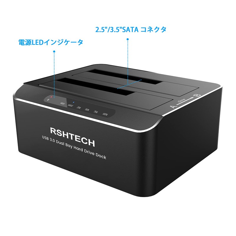 - RSHTECH 2 Bay HDD Stand: The duplicator case is equipped with two 2.5 and 3.5 inch SATA III HDD/SSD devices simultaneously and supports 2 x 16 TB capacity. Backwards compatible with SATA II and SATA I