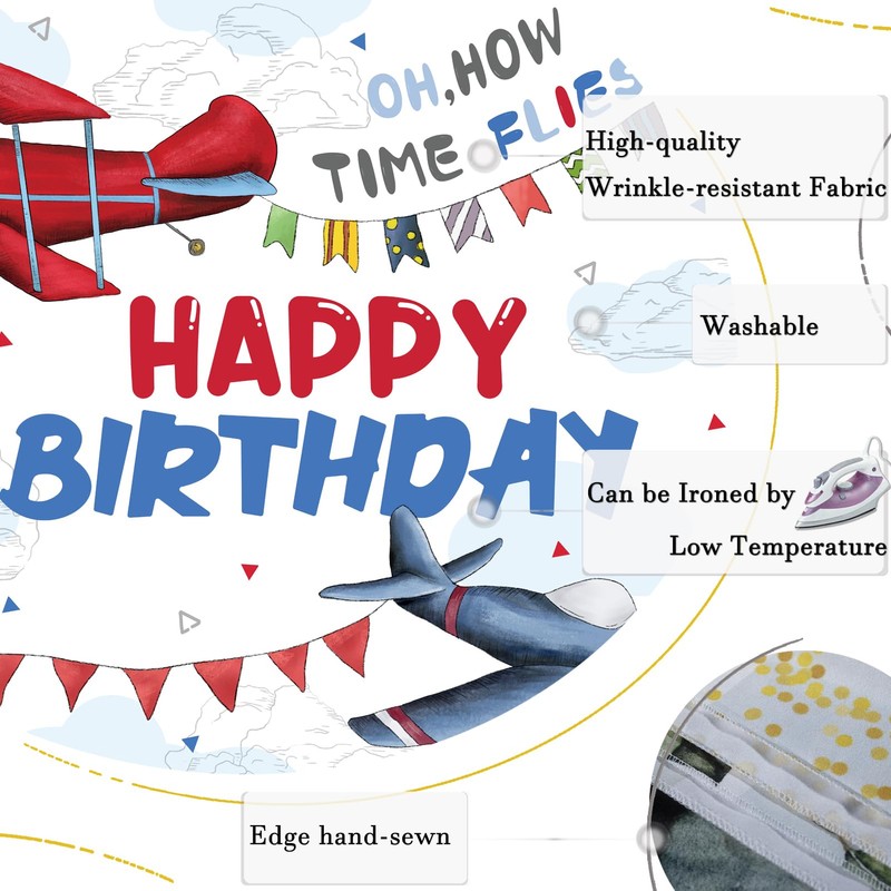 • Warm Tips -- This Airplane Theme Happy Birthday Photography Backdrop will be sent by folded. Hang the backdrop or wrap it on a tube to reduce the creases.