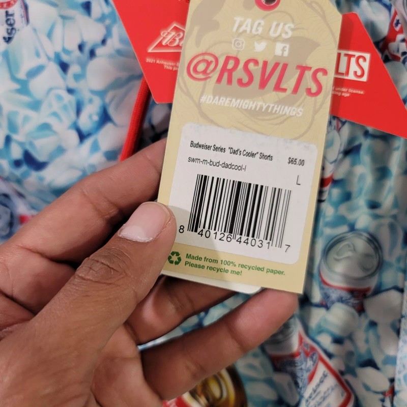 RSVLTS Budweiser Dad's Cooler Swim Shorts Trunks Beer L 5722S