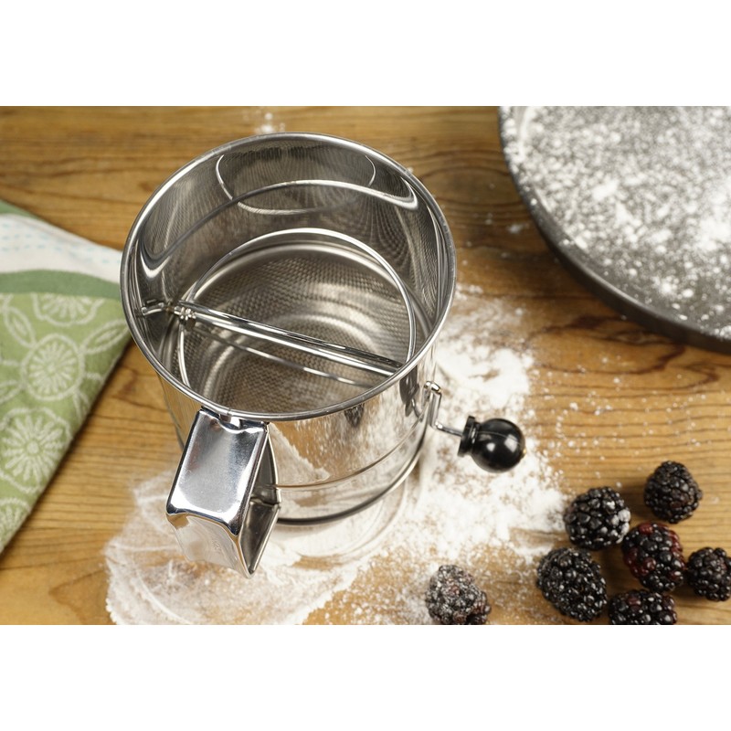 - Ideal para la cocina: hornea como un profesional con esta herramienta esencial para hornear. Este clásico tamiz de harina de estilo manivela es imprescindible para la cocina de panadería bien equipada.