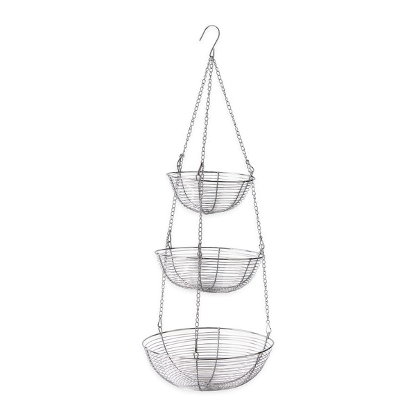 RSVP International Hanging Storage Collection 3-Tier Baskets, Chrome Woven Wire