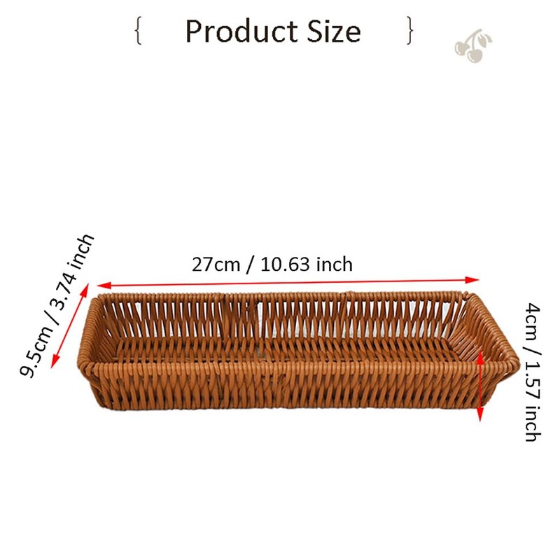 RT&BS 10.6'' Wicker Bread Basket, Hand Woven Tabletop Food Serving Basket, Flatware Storage Narrow Basket (Brown, Rectangle)