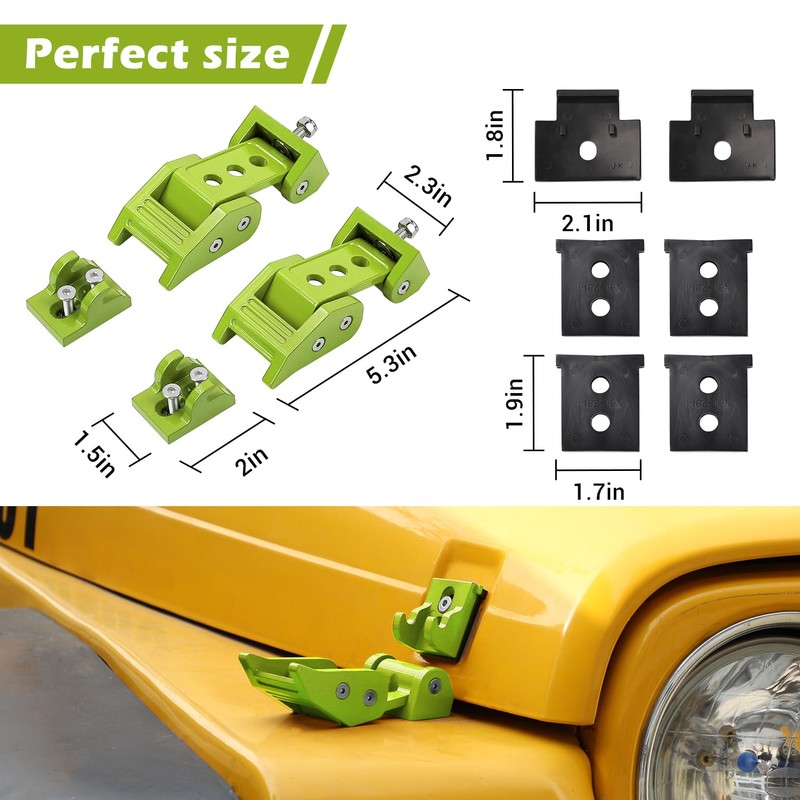RT-TCZ for Wrangler TJ Hood Latches Catch Kit Compatible with Jeep Wrangler TJ 1997-2006 Green Exterior Accessories 2pcs (3-Holes)