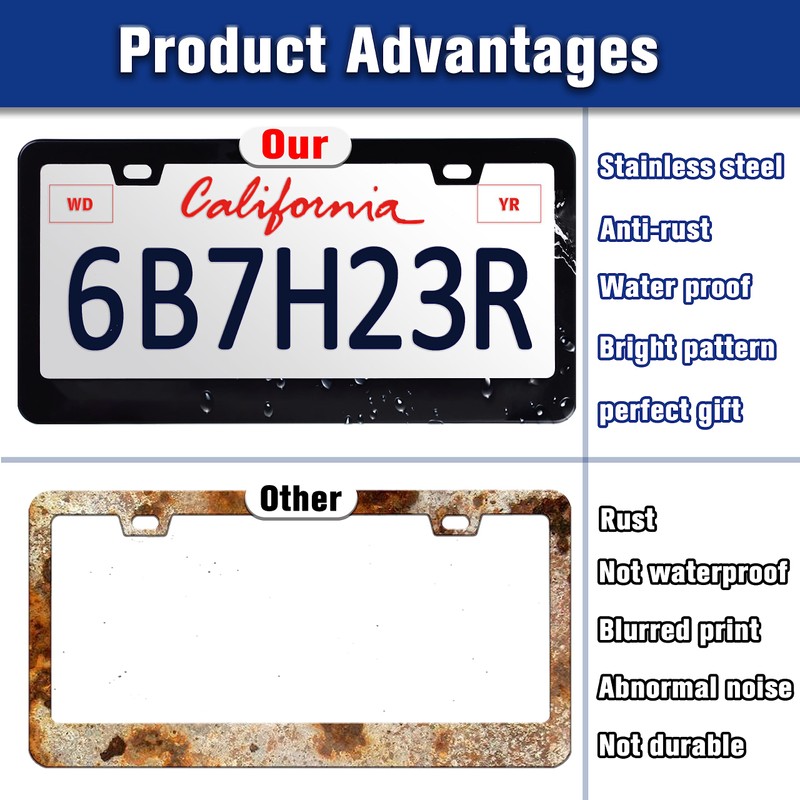 - Stainless steel material: The use of stainless steel license plate frame makes our products strong and safe, can withstand high and low temperature weather environmental temperature changes, very durable. Build Enduring Framework.