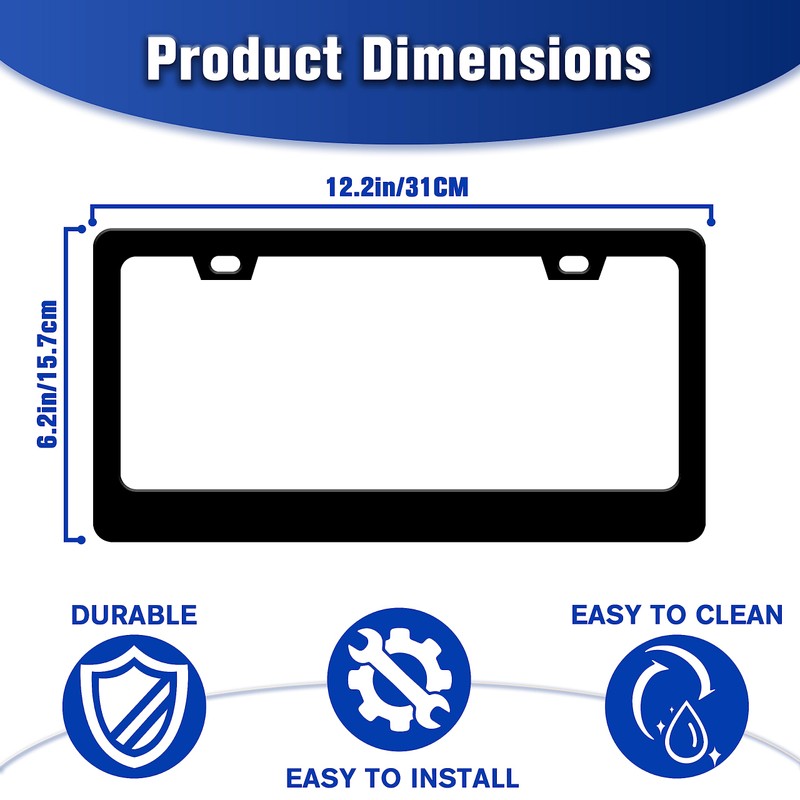 - License plate frame measures 12" x 6" inches: Fits all US standard license plate sizes.