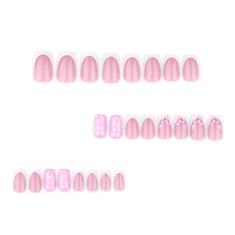 24Pcs Press on Nails Short French Tip Square Fake Nails with Nail Glue Exquisite Design for Women Nail Art SetSpecification:Item Type:press on nails Medium SquareMaterial: AcrylicColor: As the picture showsPattern: As the picture showsQuantity: 24 pcs acrylic false nailsKit Contains:24 artificial nails(12 sizes), 24 jelly glue stickers.1 mini nail file.1 alcohol cotton.1 Manicure Stick.How To Remove:Soak your nails in warm water for about 5 minutes and peel off along the edgesRemove gently with manicure stick from the base of cuticle.Considerations:Avoid pasting in inflammation and inflamed wound places Don't place in the reach of children.You can use other accessories to decorate your fake nails to create your favorite style.Note:1.Due to different lighting effect or display screen, the actual color may be slightly different from the picture.Please consult with the real products.Thank you for your understanding.2.Keep away from water for 1 hour after applying fake nails.Please do not leave the acrylic nails in water for a long time, it will make the nails fall off easily.3.Please note that the nail glue is not included.If you want it last for a longer time,please use nail glue instead of the jelly glue stickers.