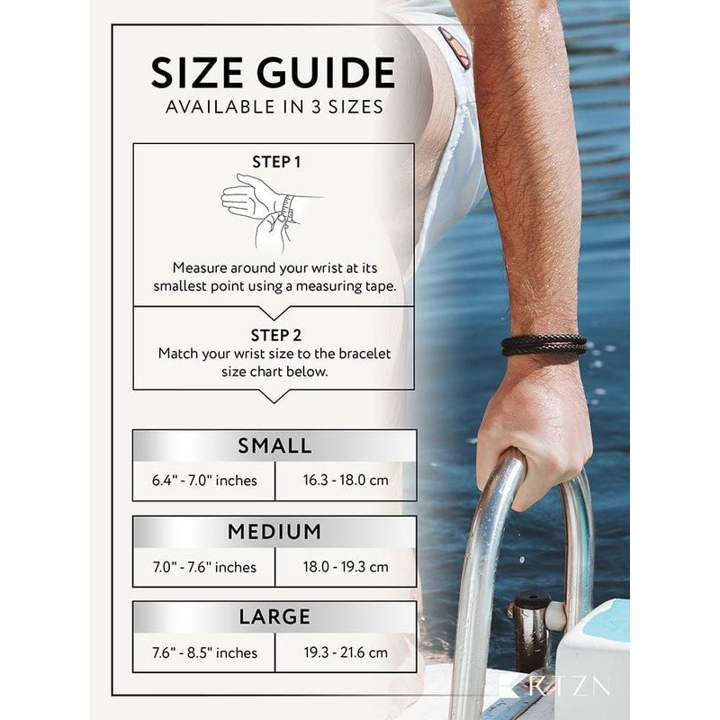 RTZN Double Black Braided Leather Bracelet - Size: Medium