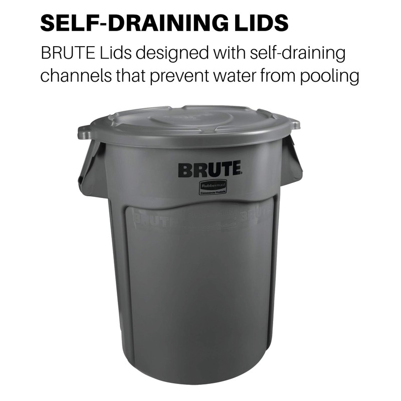 - Brute, 44 gallon, trash can lid, commercial grade, round, snap on, fits brute container 2645-60-BLA #2643, runoff channels disperse liquids