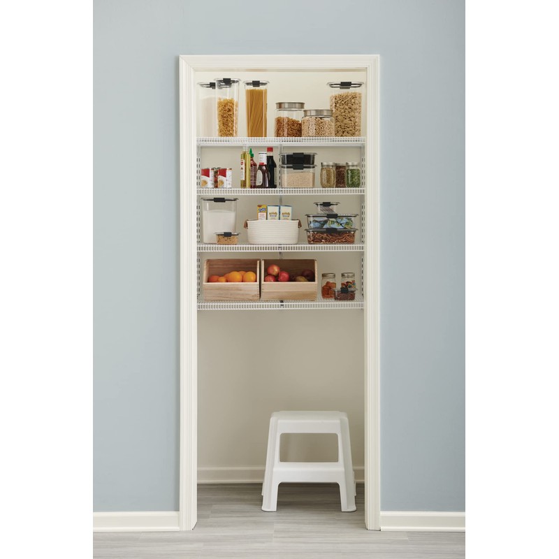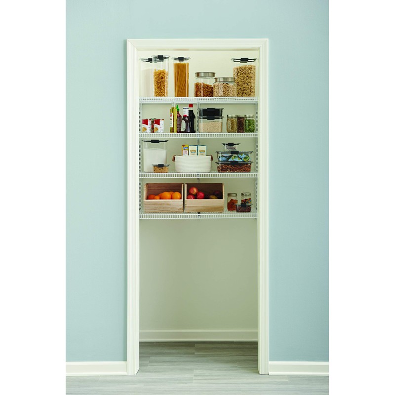 The Rubbermaid Storage 36" Pantry Shelving Kit is perfect to add shelving to small pantry spaces. The TightMesh ® shelving style offers added strength and keeps small items from tipping. Each shelf can be adjusted vertically to allow for customize shelving space needed for a variety of items being stored.