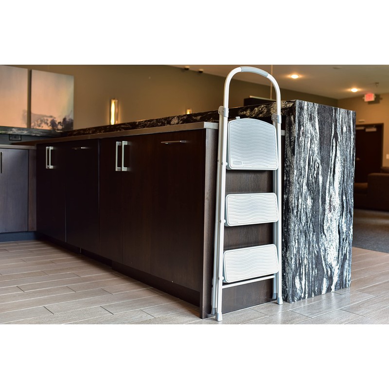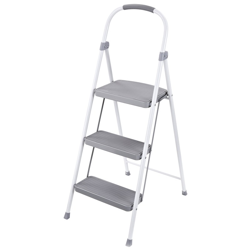 - EASY TO USE & STORE: With a top step height of 28", you can easily reach what you need then simply fold the stool up thin, easily transport it with the grip handle, and tuck it away anywhere in your home when you're done