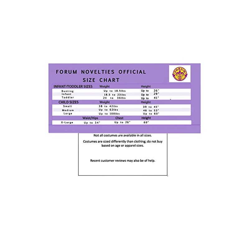- IMPORTANT INFORMATION: Costumes are sized differently than apparel, use Forum’s Child's Size Chart for best fit