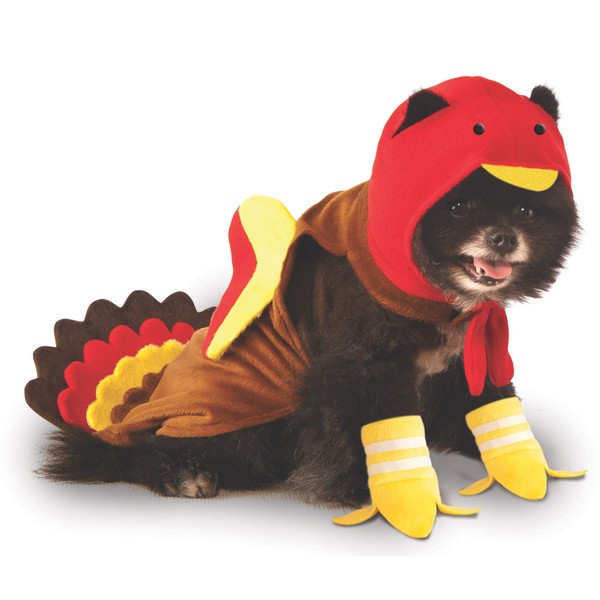 Include your pup in the celebration with this Turkey dog costume that includes jacket with attached tail, paw covers, and headpiece with attached beak. Rubie's Costume Company has been bringing costumes and accessories to the world since 1950. As the world's costume leader, we take seriously the mission to make dressing up fun! Mascots, rental quality costumes, masks, wigs, accessories, shoes, and every significant licensed costume you would ever want to wear can be found under the Rubie's brand. Rubie's brings you fun for every season: Halloween, Christmas, Mardi Gras, Easter, and all in-between.