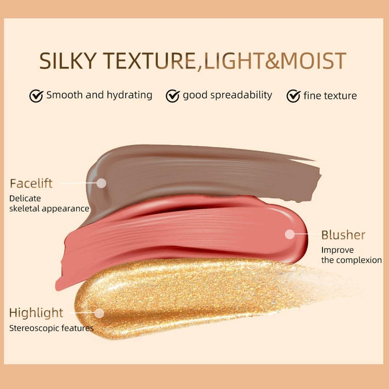 • 【Maquillaje perfecto】El rubor líquido para las mejillas es un iluminador transparente que puesuavizar y rellenar las líneas faciales, el maquillaje El rubor líquido puecrear una cara tridimensional en V y desempeñar un buen papel en la modificación.