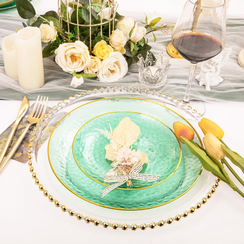 - Elegant Design: With a hammered finish and gold rim, these green and gold plates add a touch of sophistication to your parties or special events.