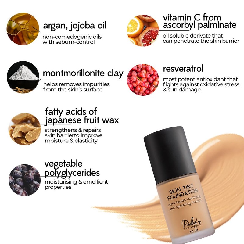 • ECOCERT CERTIFIED INGREDIENTS: Each and every ingredient used in our Skin Tint Foundation is ECOCERT COSMOS CERTIFIED - the highest global organic standard in the cosmetics industry. This means that you get the best and safest quality of organic ingredients, always.