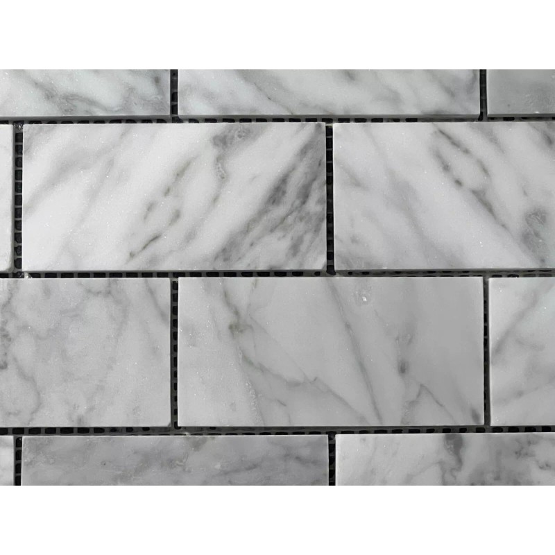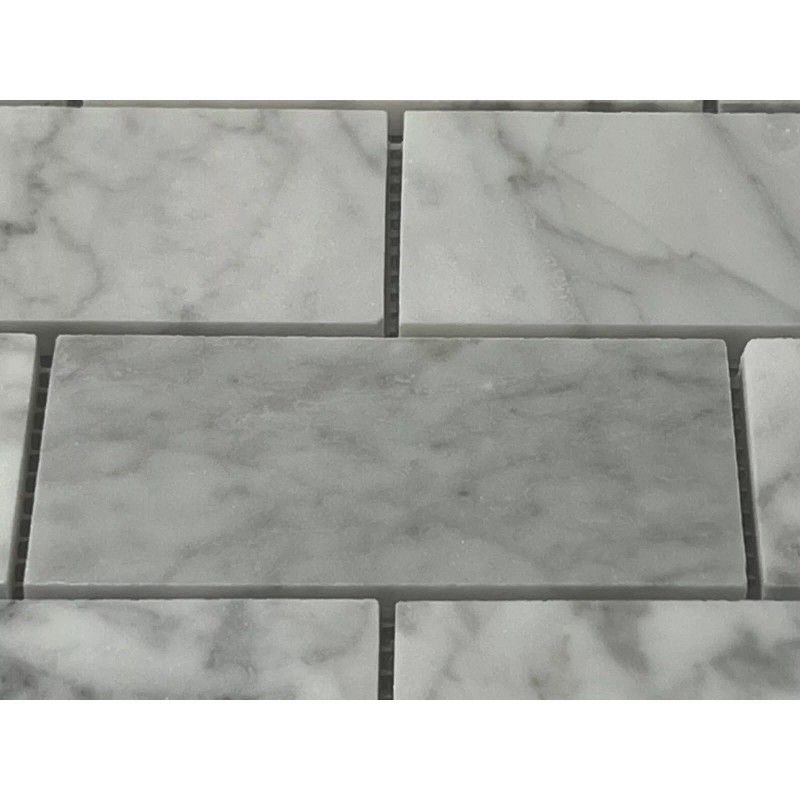 Rubymont CA14 White/Grey Rectangle Marble Mosaic Tile Kitchen Bathroom Polished